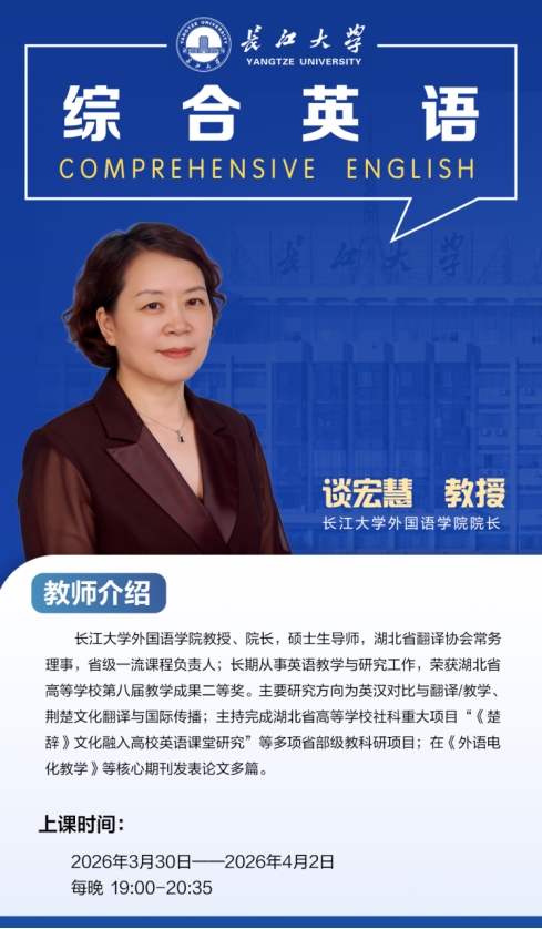 各培养单位: 根据工作安排,《综合英语》课程即将开课。为确保教学工作顺利进行,现将有关事项通知如下: 授课对象:2026年1月1日以后入册的学员(1202-工商管理专业除外) 授课科目:《综合英语》 授课教师:谈宏慧教授 长江大学外国语学院院长 授课时间:2026年3月30日-4月2日 每晚19:00-20:35 长江大学同等学力申请硕士学位学习平台网址:https://cjdxtlzx.mh.chaoxing.com/线上平台直播学习方式见附件 若以上安排有变动,会在官方网站发布最新通知。请各位及时关注。 长江大学继续教育学院 2026年3月27日 附件:长江大学同等学力申硕直播课观看流程 ![]() 附件【长江大学同等学力申硕直播课观看流程.docx】 长江大学成人高考网上报名入口 |